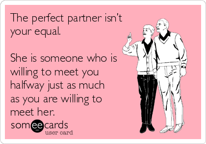 The Perfect Partner Isn T Your Equal She Is Someone Who Is Willing To Meet You Halfway Just As Much As You Are Willing To Meet Her Valentine S Day Ecard When you come from a relationship where you gave your all, but it didn't work out, you do not want to take chances when it comes to another relationship.
